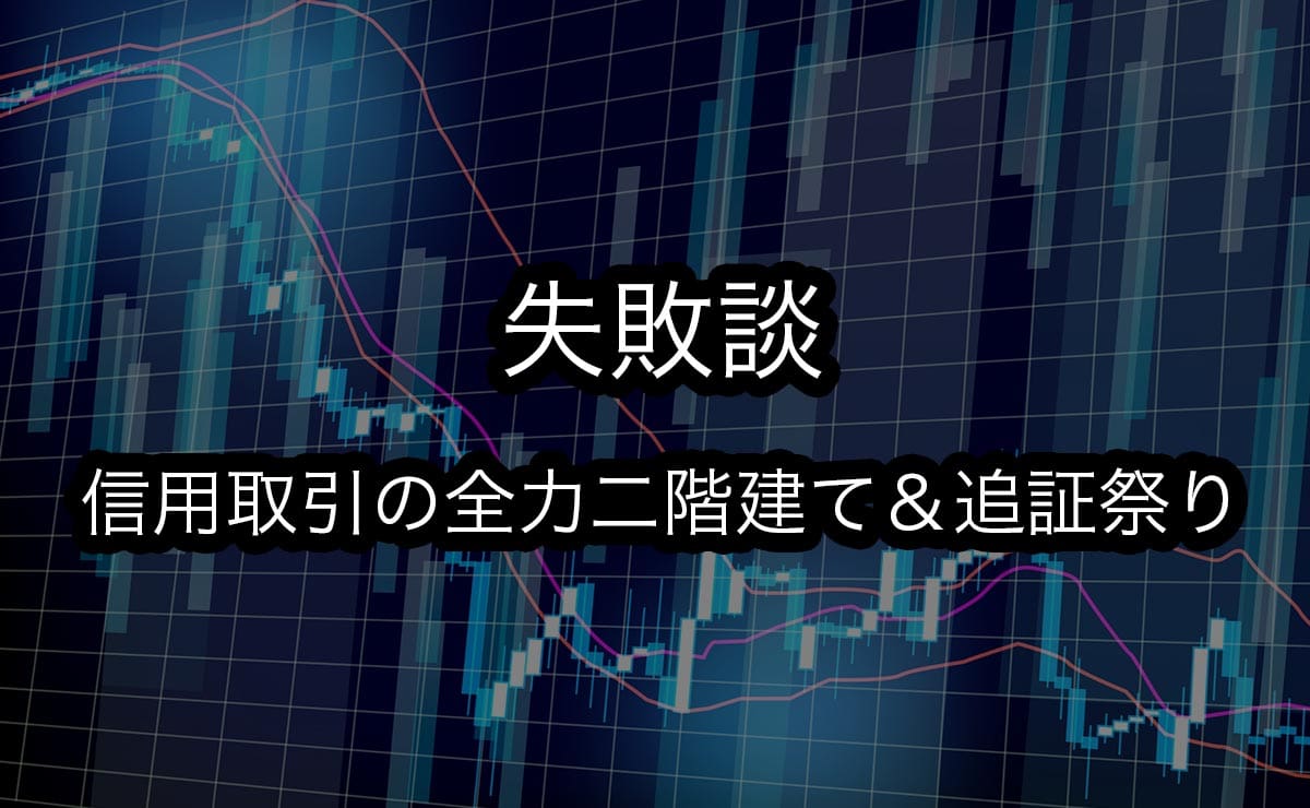株の失敗談 【株失敗談】信用取引の全力二階建て!気づいたときには追証祭りのしくじり 今でこそ個別銘柄や日経先物取引でそこそこのトレードをしていますが、かつては失敗の連続でした。先に行っておくと、本当にバカな取引です(笑)その失敗を経ての今がある。恥ずかしいですが、赤裸々に話します(笑)これから株を始める人も絶賛株式トレード... 2019.05.30 2023.03.06 株の失敗談